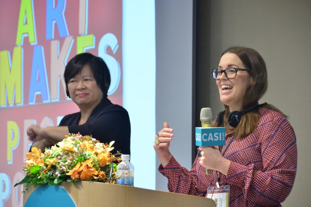 本次研討會第三場主題演講,由來自英國倫敦皇家藝術學院 家庭、近用與學校服務部主任莫麗‧布萊騰女士(Ms. Molly Bretton)主講。Molly在會中以皇家藝術學院為例,說明學院推動文化近用的脈絡、進而敘述英國各博物館與美術館推動近用與共融的現況、並討論英國文化機構推動改變和最佳實踐的當前潮流。